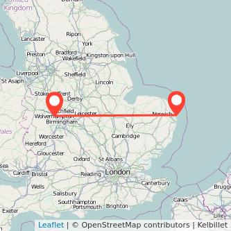 Find the cheapest tickets to travel from Great Yarmouth to Wolverhampton by train, bus, ride sharing and plane.